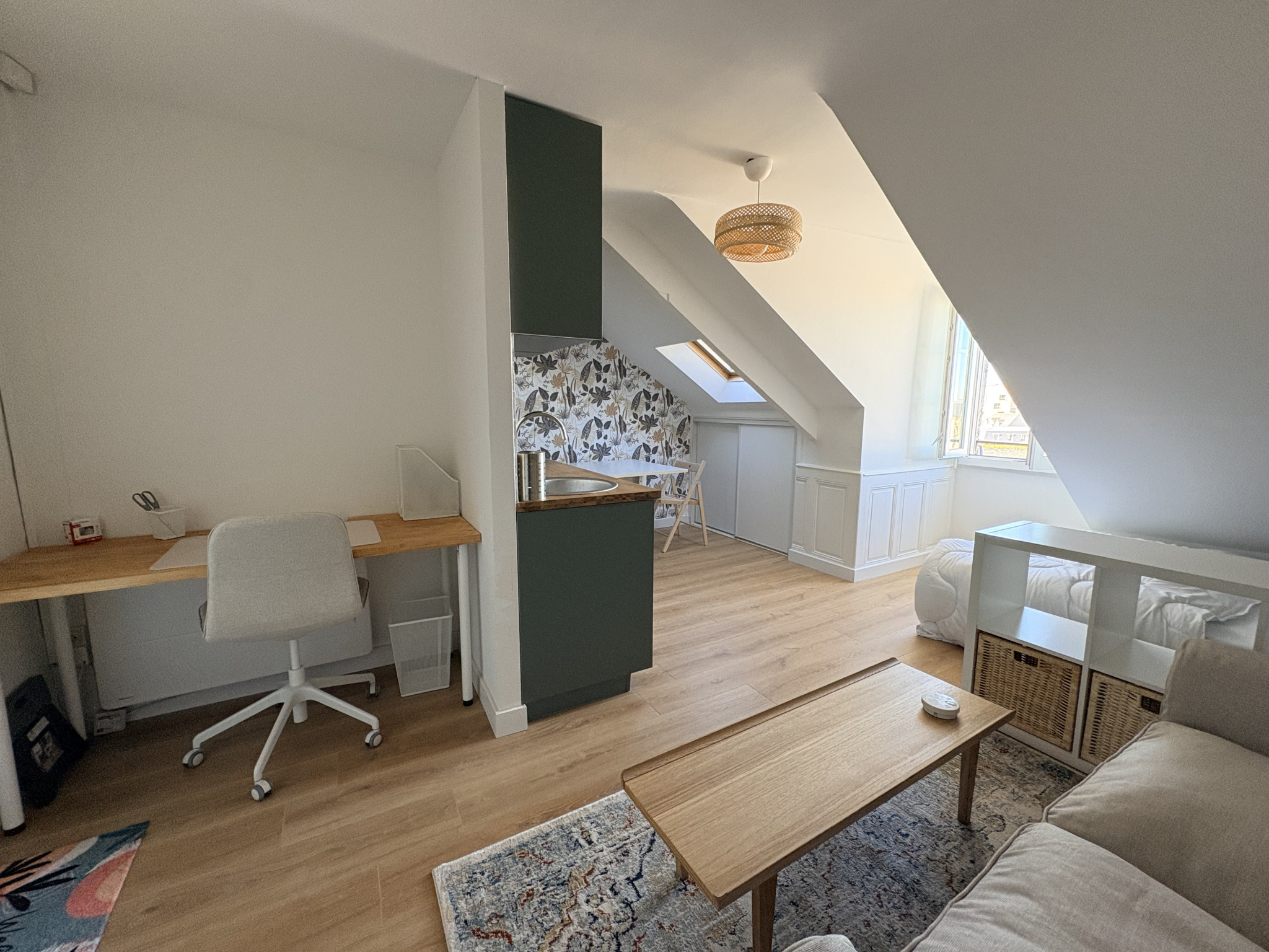 Rennes rue d'Antrain - Situé à 5 minutes à pied du coeur du centre historique, métro Saint-Anne et des commodités, ce charmant studio meublé de 17m2 (24,59m2 au sol) entièrement rénové en 2026 est disponible à la location. Niché au 4ème étage sans ascenseur, il offre un cadre de vie agréable. Composé d'une pièce à vivre avec un coin nuit, une cuisine moderne et fonctionnelle, une salle d'eau avec wc. Nombreux rangement et espace bureau. Chauffage individuel électrique. Loyer 690 € + 10 € de provision sur charges (copro) - Dépôt de garantie 1380 € - Honoraires (part locataire) : 224,90 € dont frais d'EDL inclus. DPE établi le 28/02/2025 DPE : D (300) - GES : B (9) - Montant estimé des dépenses annuelles d'énergie pour un usage standard : entre 470 € et 670 € par an. Consommation énergie primaire : 300 kWh/m²/an. Consommation énergie finale : 130 kWh/m²/an - Prix moyens des énergies indexés sur l'année 2021, 2022, 2023 (abonnements compris). Les informations sur les risques auxquels ce bien est exposé sont disponibles sur le site Géorisques : www.georisques.gouv.fr
